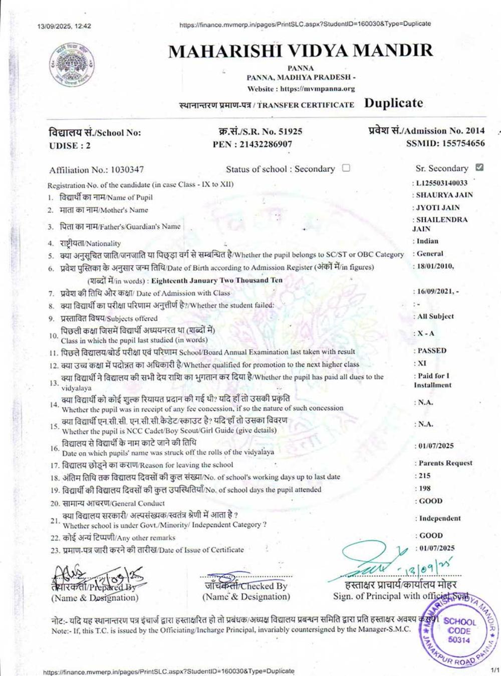 | 2 | 2014 | SHAURYA JAIN | X | A | |