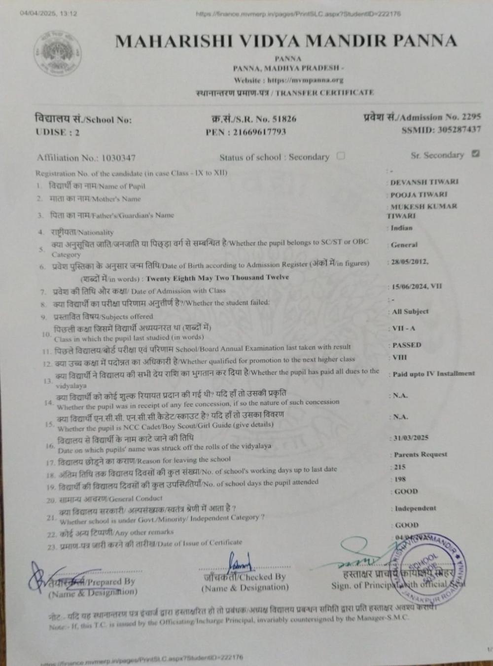 | 28 | 2295 | DEVANSH TIWARI | VIII | ||