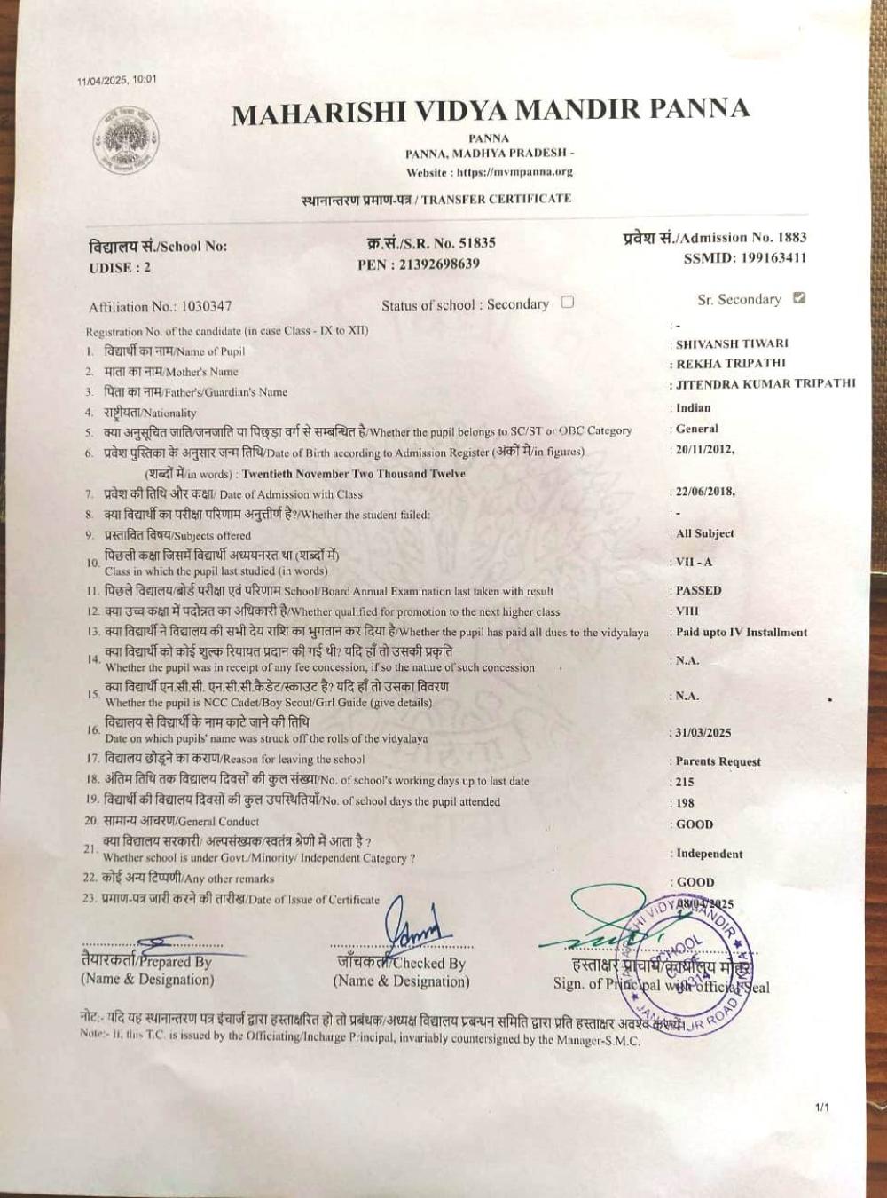 | 24 | 1883 | SHIVANSH TIWARI | VIII | ||